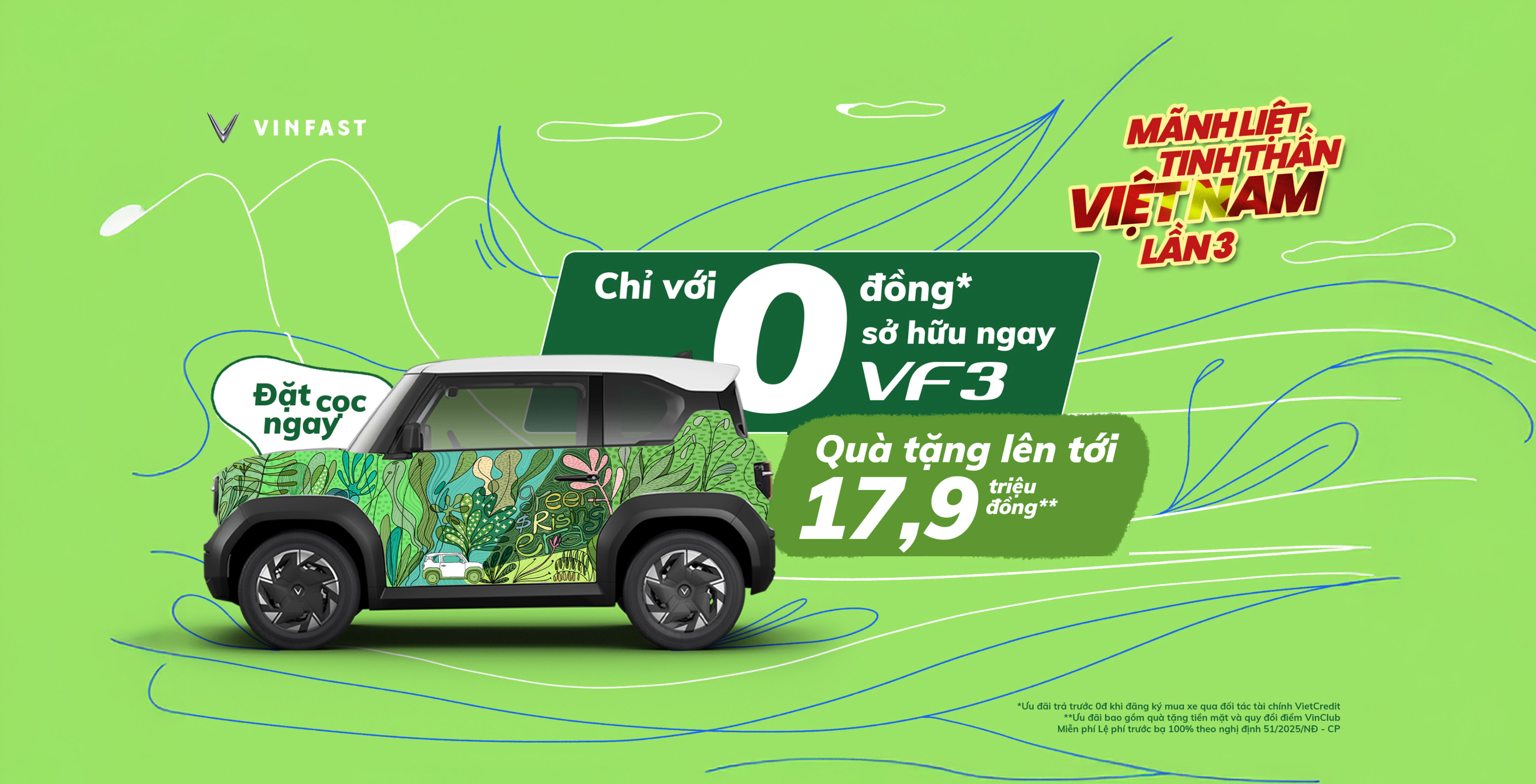 - VinFast VF3: 299.000.000 khuyến mãi 4% tương đương 11.960.000 giá ưu đãi 287.040.000 (Tặng 6.000.000 tích điểm Vinclub áp dụng cho khách ra biển số Hà Nội, TP.HCM); Hỗ trợ giảm lãi suất 3% trong 3 năm, khách bán xe xăng mua xe điện được giảm thêm 6 Triệu - Liên hệ trực tiếp để có giá tốt hơn nữa